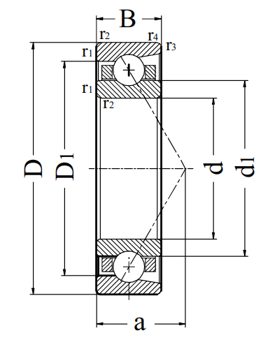 該類型軸承 配對使用可承受徑向與軸向的聯合載荷,在輥系裝配中與四列圓柱滾子軸承配套使用只承受軸向負荷,多選用7000AC接觸角25°及7000B接觸角40°兩種結構形式;接觸角越大所能承受軸向力越大。采用背靠背DB(外圈端面相對)或面對面DF(外圈窄端面相對)配對組裝,安裝在軋機的固定端,限制軋輥的雙向竄動,可承受中等以下的軸向負荷,極限轉速高。軸承應成對提供、成對安裝,以免軸承軸向游隙失調。